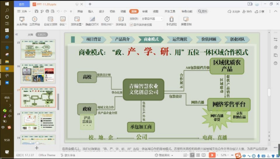 辅导过程中,“跃然纸上”团队负责人按国赛要求进行了6+6模式的答辩预演,从项目背景、产品简介、商业模式、运营现状、价值回顾、创业团队等六个方面以及“利用AR+模式包装”等项目特色对团队项目进行全面介绍,答辩结束后,各位老师都针对项目提出了改进意见。辅导结束后,团队认真整合、消化辅导内容,完善项目答辩材料,为国赛积极准备。