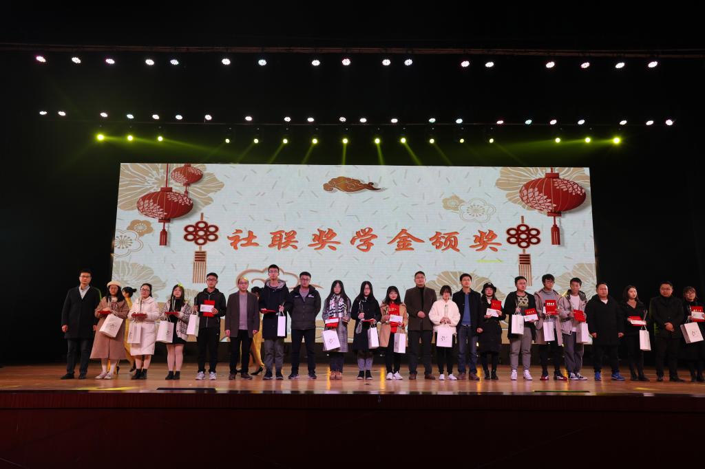 闭幕式上,到场的领导和嘉宾为2019年“最牛社团”“新秀奖”“模范团支部”等6个集体进行颁奖,为陈文溆乐等15名社联奖学金获得者颁发奖状和奖金。