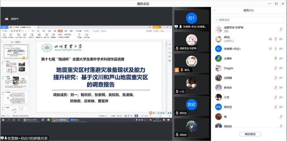 10月19日,挑战杯国赛项目路演赛前辅导通过腾讯会议线上顺利举行,地震重灾区村落避灾研究项目团队和指导老师徐定德教授和校团委相关负责老师参加了此次培训。