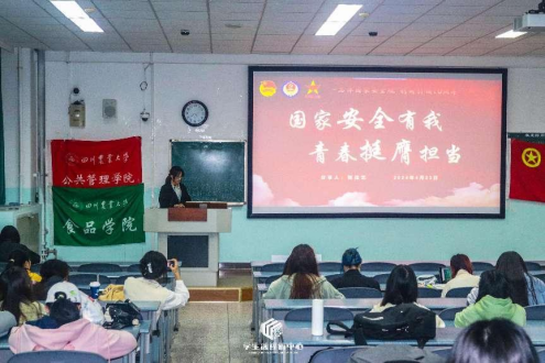 为激励广大团员青年在生活与实践中认真学习贯彻习近平新时代中国特色社会主义思想,进一步加大对新时代青年的培养教育力量,引导青年大学生坚定不移听党话、跟党走。2024年4月23日,校团委学生第二课堂成绩单运营中心流动团支部联合公共管理学院人力202202、人力202203、人力202204、食工202204小班团支部共同举办“国家安全有我,青春挺膺担当”主题班团活动。