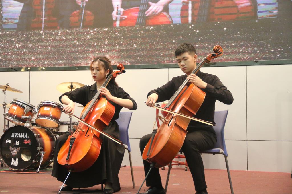 比赛在宋泽安同学的小提琴独奏曲《渔舟唱晚》中拉开帷幕,萨克斯四重奏“Kings”以《名侦探柯南》中的经典曲目《detective-conan》将同学带回儿时回忆,引得全场欢呼;“花儿也会进化”组合将现代电声音乐融入传统乐曲,演绎出别样《拈花笑》;随后“Burlywood”“抢拍啦,练琴人”“GONDOLA”“绀青之乐”“Severe Winter”等选手组合带来的《Passacaglia》《巴赫D小调协奏曲》《威尼斯狂欢节幻想变奏曲》《莫扎特<弦乐小夜曲:第一乐章>》《泰勒曼f小调巴松奏鸣曲第一、二乐章》等乐曲将观众们带入西方古典音乐世界;民乐组合“飞天乐伎”深情演绎《敦煌》尽显西域风情,再次将现场推向高潮……最后带伤坚持上场的梁伟同学以一首展现黄土高原旷远苍劲的扬琴独奏《黄土情》为比赛画上圆满句号。