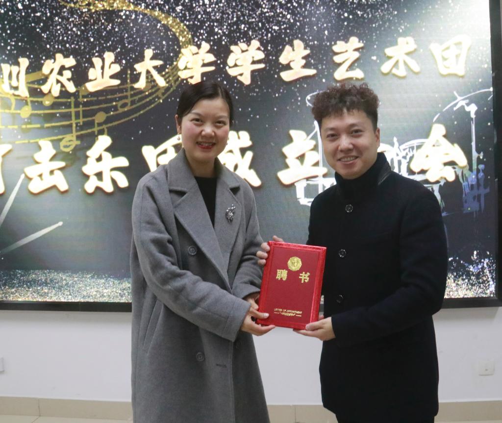 11月25日下午,我校大学生艺术团打击乐团成立大会在成都校区西康楼207会议厅举行。四川音乐学院青年打击乐演奏家赵思智、校团委相关负责领导和老师、打击乐团全体成员参加成立大会。 学生文化素质教育中心办公室负责老师对学生打击乐团筹建情况和规划做了介绍,校团委副书记刘思麟为乐团外聘指导教师赵思智颁发聘书。指导老师和同学们围绕乐团的下一步发展和存在的问题做了讨论交流。 截至目前,我校大学生艺术团现有演唱、舞蹈、乐器、语言等5个类别共计24个分团。每年开展“歌舞青春”、“阿卡贝拉”、“紫薯音乐节”、“锦绣梨园”等各类专场30余个,吸引近4万师生观看。作为西南地区第一所成立学生打击乐团的非专业高校,在学校的大力扶持下,自今年9月筹建以来,先已有康佳、小军鼓、邦戈、通通鼓、交响大鼓、牛铃、中国鼓、大建鼓、以及锣、镲等完备的设施和编制。下一步乐团将整合校内外资源,立足学校,面向四川,力争打造出一支高水平有特色的大学生打击乐团。