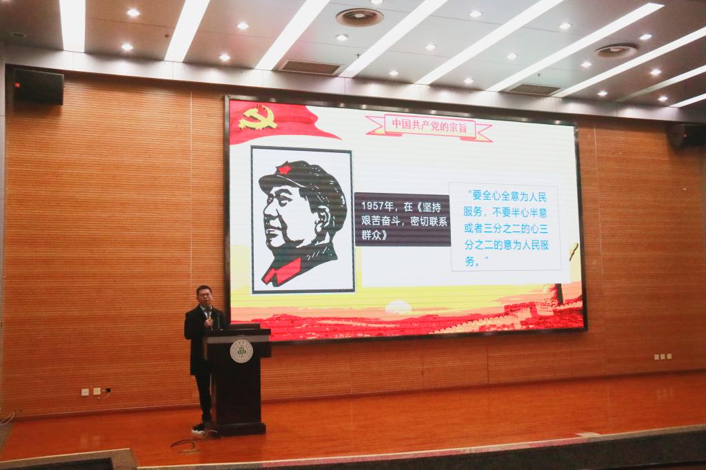 杨世义以“现代化”这个关键词对会议精神展开了解读,通过对医疗技术条件、资源分配等问题的分析阐述了会议召开的重要性和必要性。分享过程中,他以通俗易懂案例分析了我国十三个“显著优势”和背后原理,让同学们深刻认识国家制度和国家治理体系对推动我国发展进步的重大意义。最后,杨老师从两个定位、三个维度和六个制度,以情景设问的方式引导同学们设身处地展开思考,重点解读十九届四中全会对坚持和完善党的领导制度体系这一重要内容。