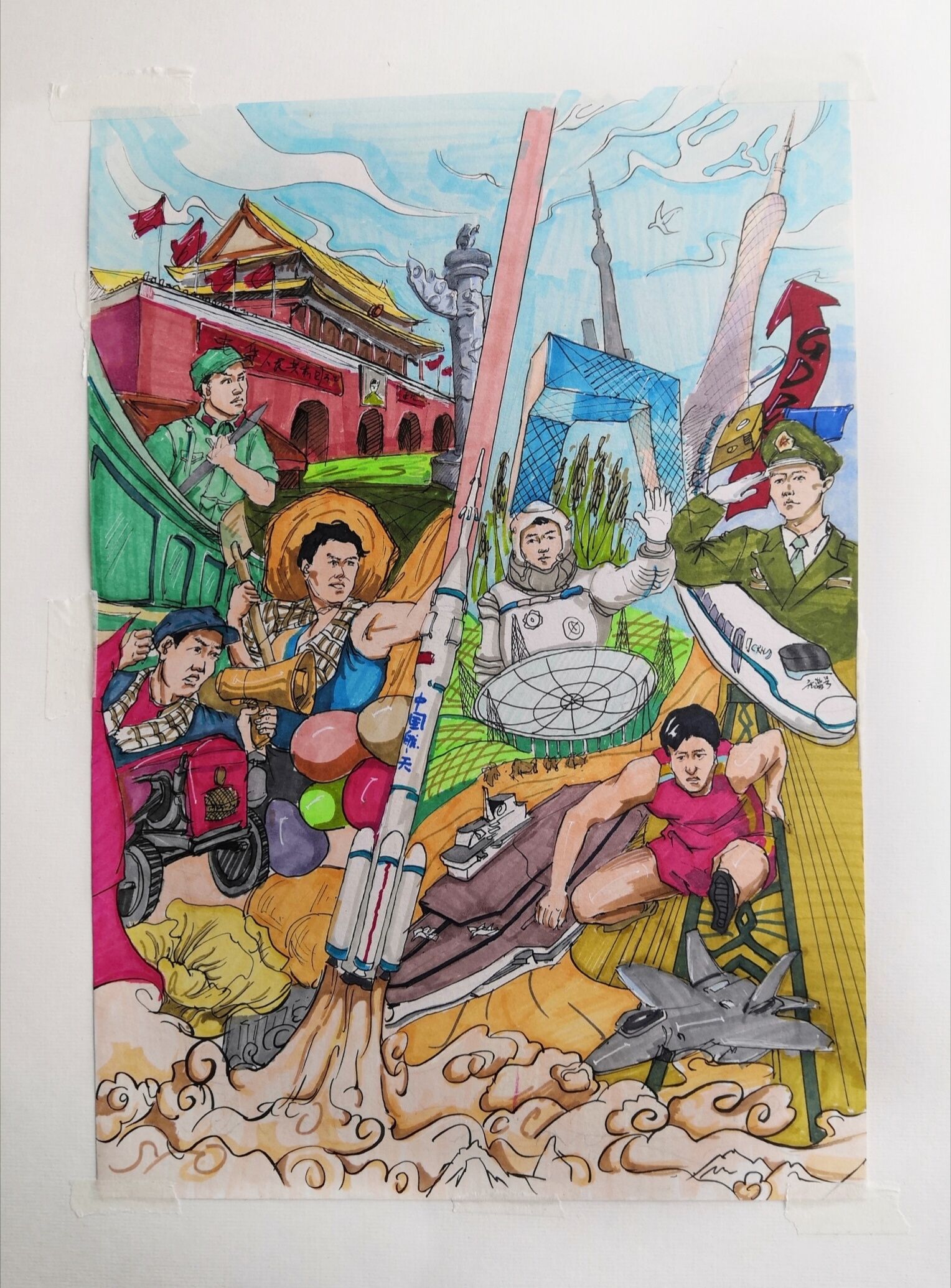 大赛不仅鼓励同学们以手中之笔,绘心中之国,为祖国母亲献上美好祝福,更让同学们在一笔一画中切身感受到祖国70年的沧桑巨变和改革开放以来取得的辉煌成绩,树牢广大学生心中的爱国主义情怀和精神。