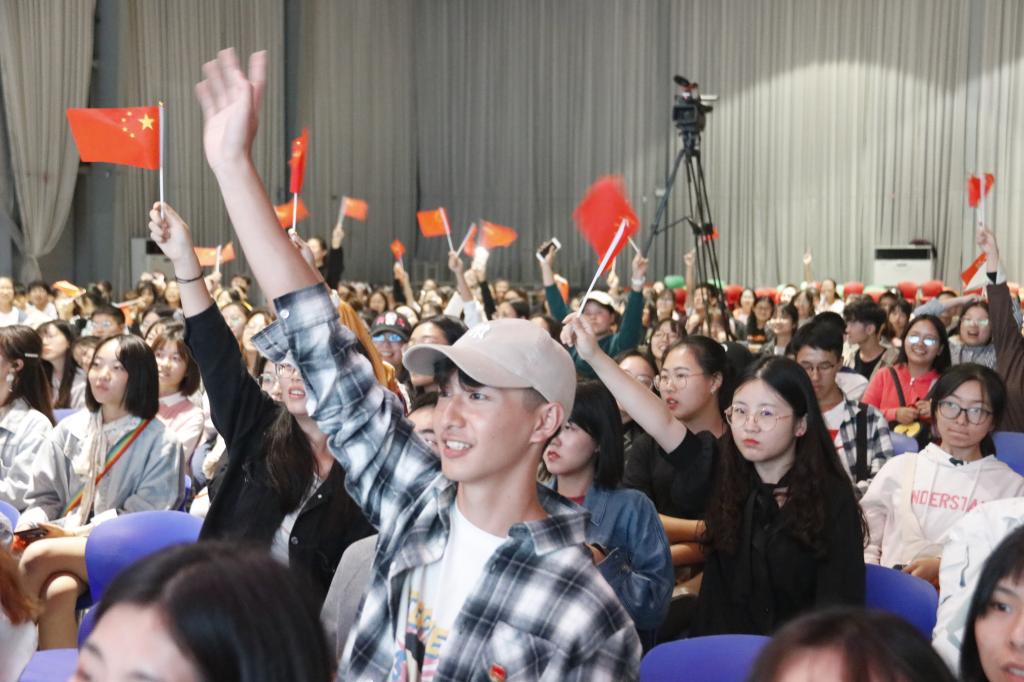 分享会在全场同学挥舞国旗齐声共祝“新中国成立七十周年”的祝福声中落下帷幕。