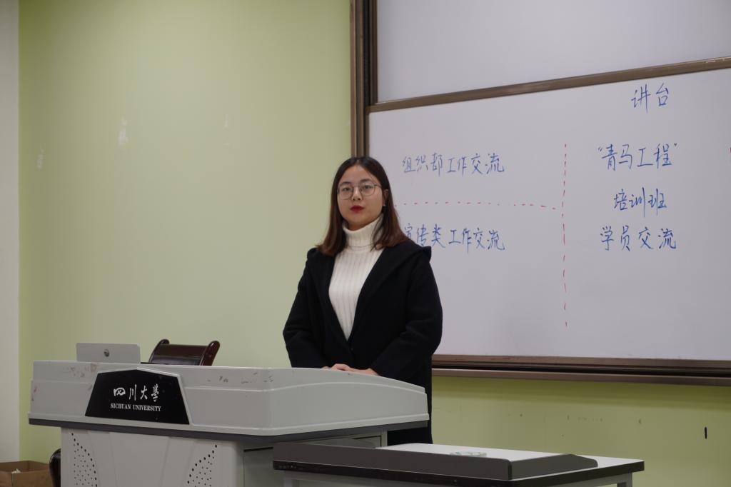 在四川大学,学员们与该校团学骨干就基础团建、学生社团、第二课堂、青马工程等四个方面进行了分享交流,四川大学校院两级社团管理的工作模式,创新了学员们对于学生社团工作的思路。会上还就“社会实践与志愿服务融合管理”进行了研讨,针对“如何深化内部工作机制”“实现学生组织高效管理”“提高成员工作的积极性”等问题进行了交流分享。