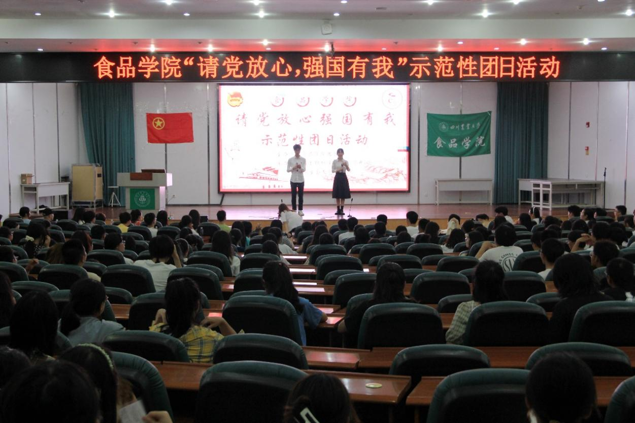 由校团委组织建设与发展指导中心团支部组织开展的示范性团日活动中,播音与主持中心的同学们现场朗诵《请党放心,强国有我》,铿锵的誓言令现场同学不禁一齐朗诵。活动中邀请到青马学员、创业达人、实践先锋等不同方面的优秀同学从青年传播红色精神、投身乡村振兴等方面进行专题微团课分享。