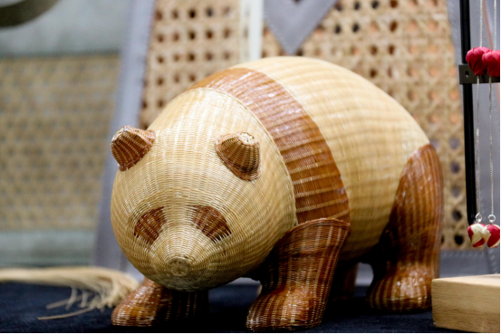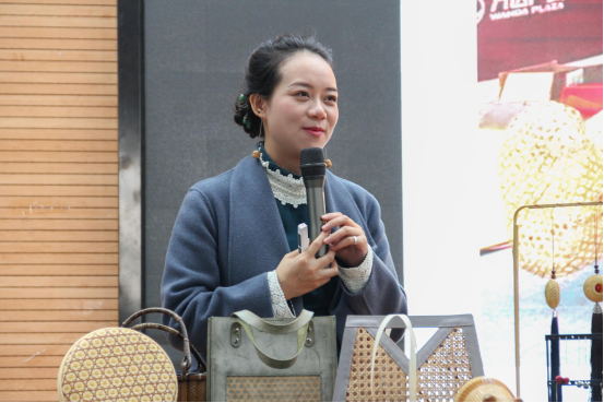 “竹是天府文化最鲜明的代表之一,而道明竹编则是崇州2000多年生活的写照。”杨隆梅从历史起源和发展历程带领同学们走进国家非物质文化遗产道明竹编。通过讲解让同学们近距离了解制作竹编的详细过程。讲座现场,古朴精巧的发簪、耳环,时尚大方的手提包、竹编与陶瓷的结合为传统竹编制品注入更多的心意与创意,让人眼前一亮。实物展示更让同学们争相传看拍照,感受非遗文化与时俱进的独特魅力。 “青山绿水之下,道明竹编的传统技艺在传统与创新中代代相传,更在传承中弘扬传统文化和助力乡村振兴。”杨隆梅最后说到。