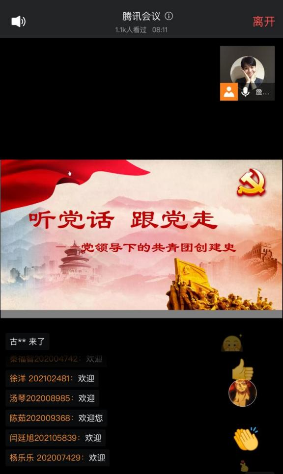 5月5日,校团委书记刘思麟在腾讯课堂为1200余名同学带来第25期“团团大讲堂”——《党领导下的共青团创建史》,以生动的案例、提问互动式的讲述,带领同学们重温了一百年前中国共青团诞生的历史,吸引线上点赞3.8万次。法学院2021级团员叶子阳学习后表示:“共青团是在党的关怀和引领下建立起来的,新时代青年应该拿稳接力棒,继续做党忠实助手和后备军!”