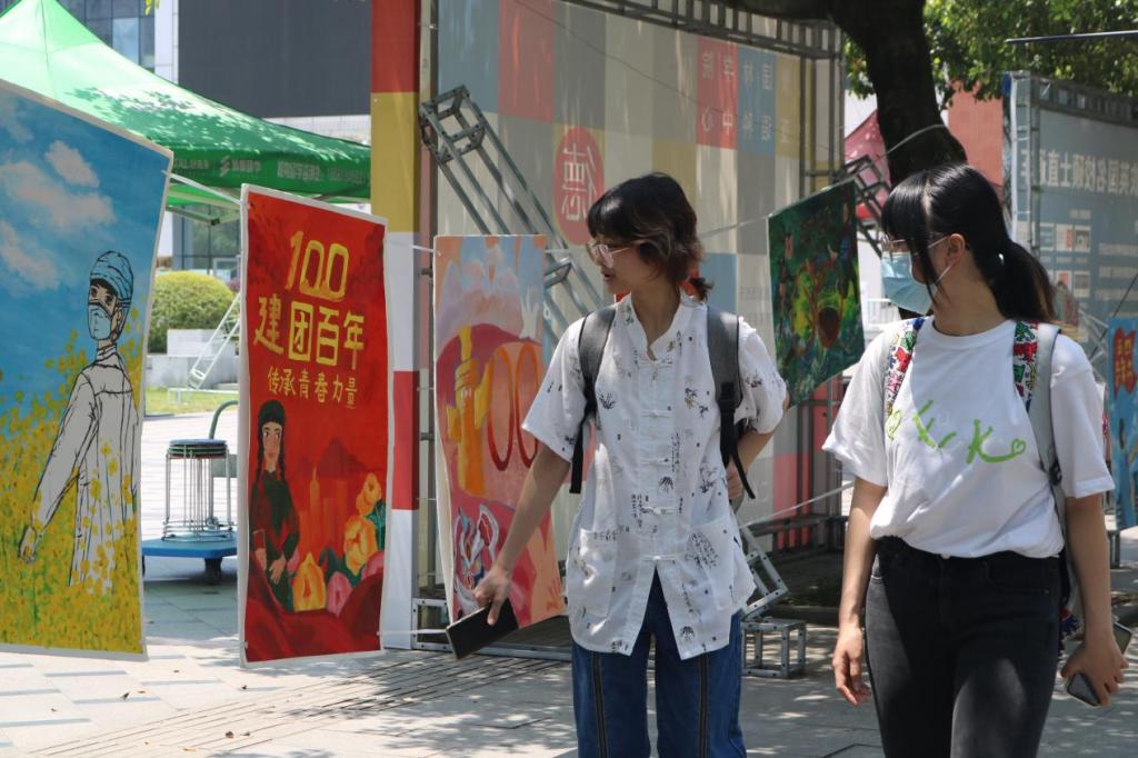 学生社团管理与服务中心举办的“庆祝建团百年书法手绘作品展”活动于5月5日在成都校区食堂小广场、雅安校区二区主干道顺利拉开帷幕。参展作品分为建团百年、青春担当、同心战疫三个部分,主要以丙烯手绘、刀笔油画、手工剪纸、书法作品等为创作形式,60余份作品在林荫旁点点相连,构筑起一条绚丽的青春红色文化走廊,吸引大量师生驻足欣赏。校院联动精彩正上演