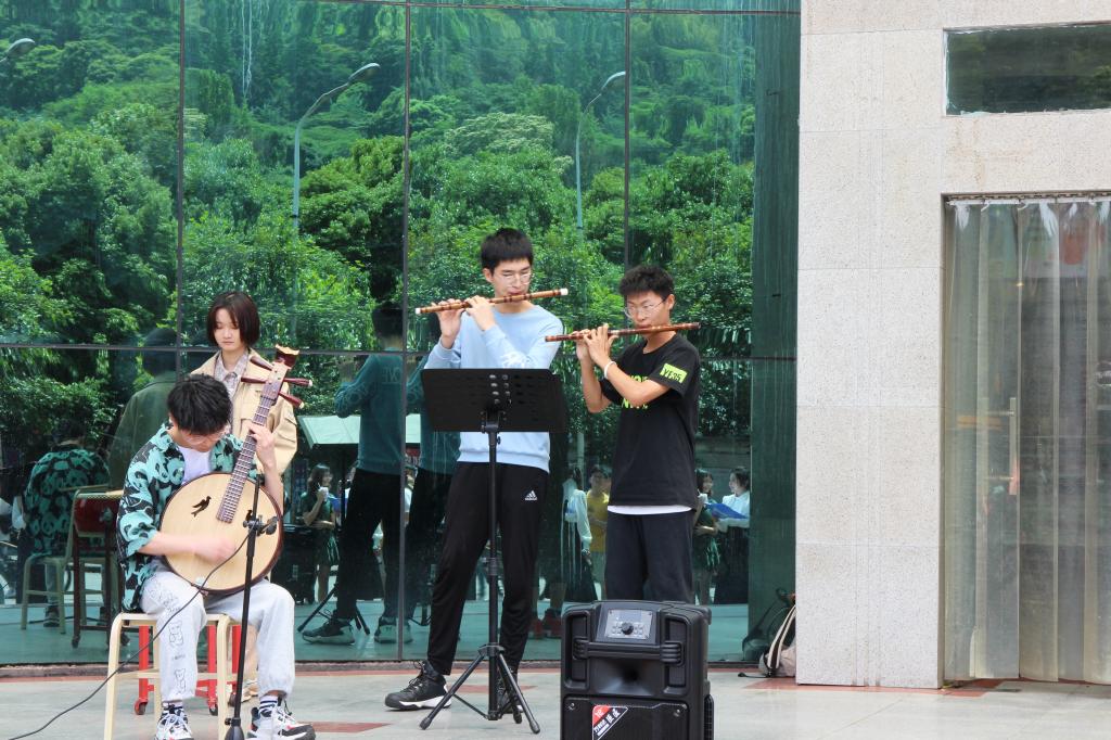 在成都校区快闪如火如荼进行时,雅安校区也同样精彩热烈。“山河无恙,烟火寻常,可是你如愿的眺望……”来自电影《我和我的父辈》的主题推广曲《如愿》在同学们空灵的唱腔中动情讲述两代人间的精神传承,更呈现了在一代代人的奋斗与传承中中国的日益强大。