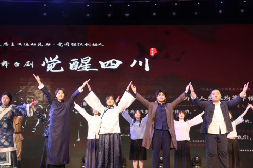 4月28日晚,由校团委主办,大学生艺术团话剧团演出的原创校史舞台剧《觉醒四川》在雅安校区体育馆隆重上演。校党委副书记张强和党校2022年春季学期发展对象以及在校师生共计4000余人,通过线上线下相结合的方式共同观看了这场别具一格的生动党课。