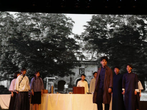 舞台剧《觉醒四川》是在学校庆祝建党百年重点活动校史舞台剧《王右木》的基础上全新修改升级的版本。该剧以川农校友王右木在四川传播马克思主义和开展无产阶级革命运动为核心内容,讲述了从1919年到1924年,王右木在人生的最后五年中激情饱满、不遗余力投身传播马克思主义运动,为马克思主义在四川的传播及四川群众阶级觉悟的提升奉献自己全部心血的故事。全剧共分四幕,再现了王右木毅然与旧式家庭决裂走上革命道路,组织马克思主义读书会,争取教育经费独立,创建四川党团组织等过程,展现了王右木在黑暗时代中无惧强权、奋力抗争、寻求光明的悲壮形象。