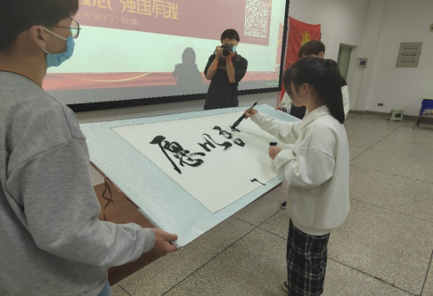 图/学生书画协会成员现场书法创作