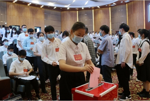 代表们分为8个团对各项报告进行审议。大会主席团听取了各分团讨论情况汇报。全体与会代表举手表决,全票通过大会选举办法,成功选举出新一届团委委员、学代会常任代表、学生会主席团成员,全票通过工作报告决议。