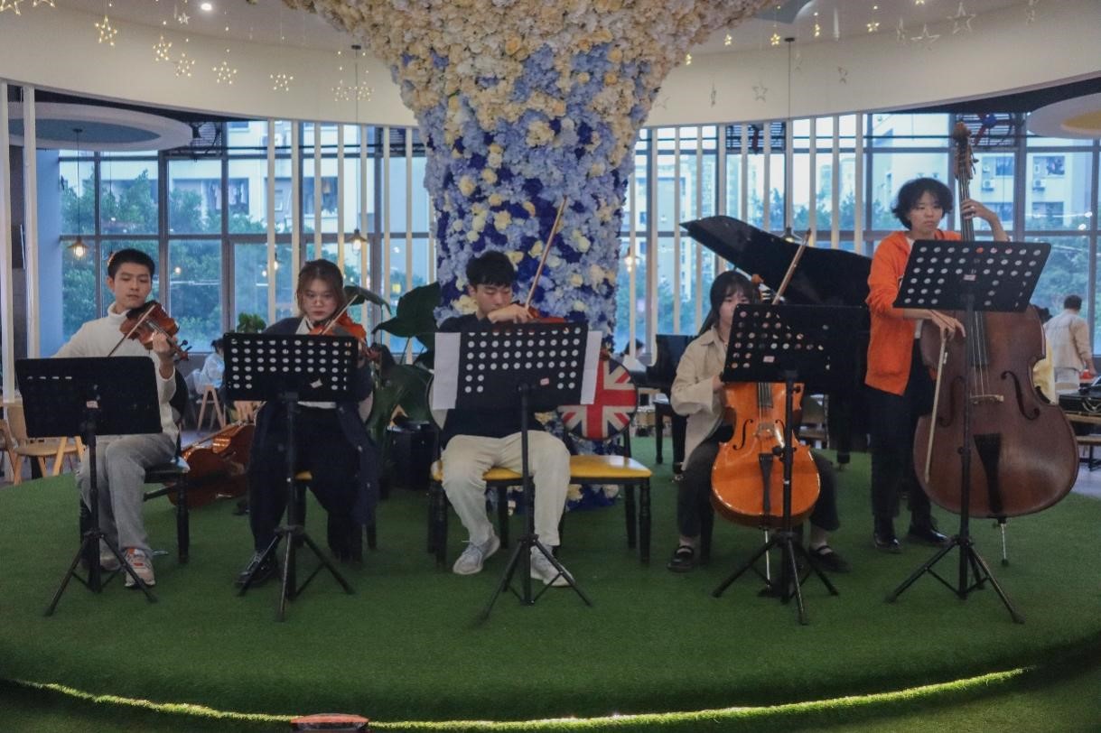 在食堂就餐时就能欣赏音乐!”“太酷了,还能近距离感受音乐的魅力!”“碰巧路过,给我忙碌的学习生活增添了一份美好与感动”……