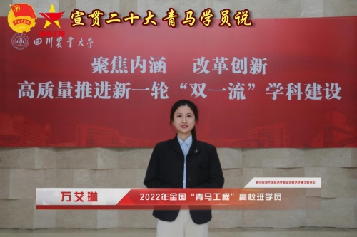 近日,中共四川省委教育工委办公室发布《关于公布2022年全省“大学生年度人物”推选展示结果的通知》,经学校申报、专家组评审等程序,我校经济学院2021级硕士研究生万艾琳获评2022年四川省“大学生年度人物”。本次评审推选旨在充分展示高校大学生群体昂扬向上、锐意进取的精神风貌,展现青年大学生爱党爱国、向上向善的责任担当,全省仅20位大学生获此殊荣。