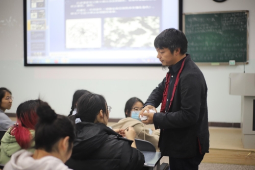 活动邀请到传统手工艺扎染大师周德伍老师为同学们介绍扎染知识和指导现场扎染制作。“绳一定要打紧,不然一切都是无用功”“放进染缸等待‘奇迹’”,周老师饶有风趣的讲解让同学们极其投入。周老师讲解完毕后,同学们便开始创造属于自己的“扎染奇迹”。