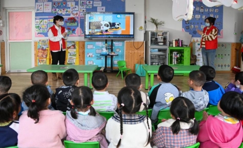 志愿者以趣味动画的形式引导小朋友们学雷锋