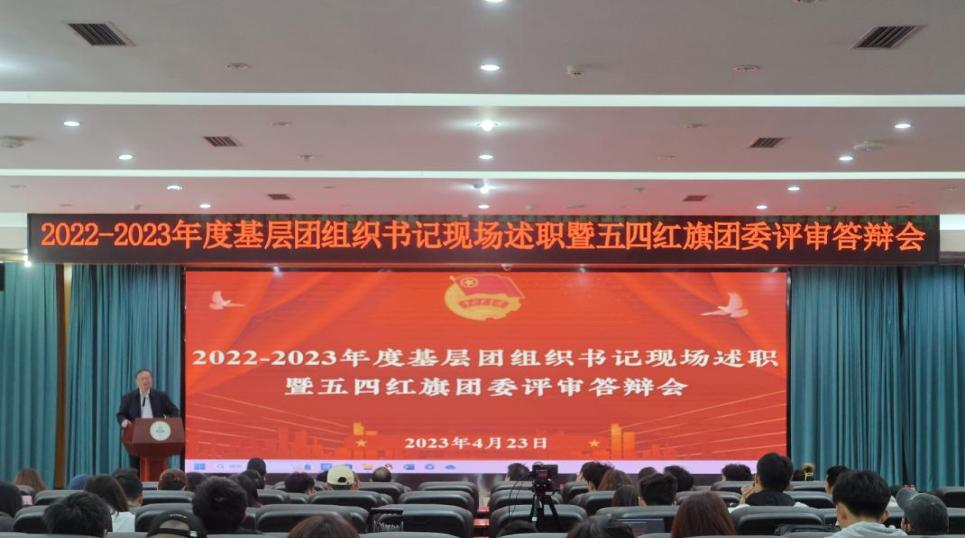 4月23日下午,学校2022-2023年度基层团组织书记现场述职暨“五四红旗团委”评审答辩会在雅安校区十教一楼报告厅举行,学校党委副书记张强,学工部、研工部、招就处、校团委等部门相关负责人担任答辩会评委,线上线下2500余名师生观摩答辩会。