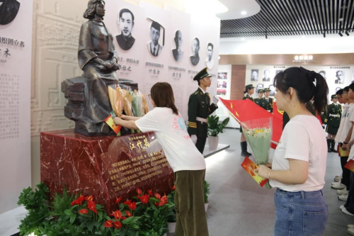 图/新团员代表为英烈献花