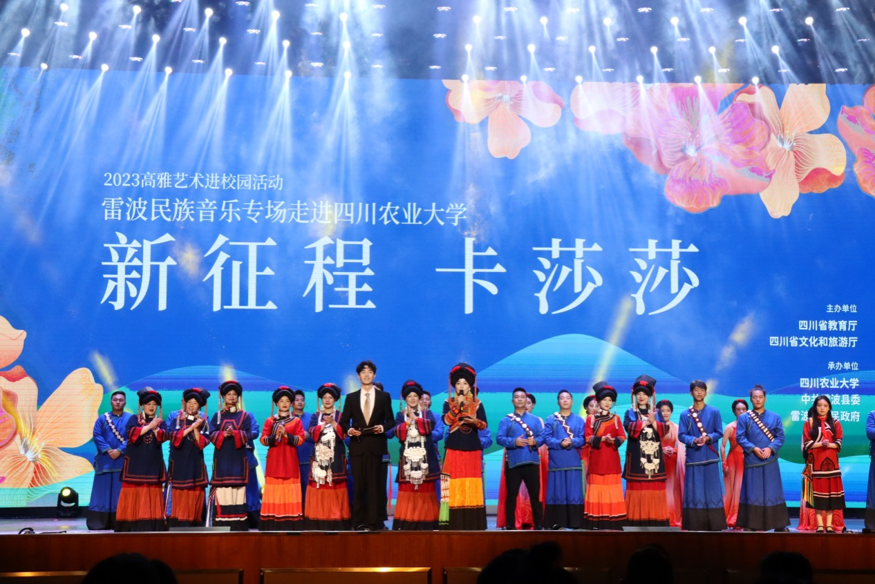 为挖掘和传承优秀民族民间音乐,不断提升我校大学生美育素养,6月4日,由教育厅、文旅厅主办的四川省2023年高雅艺术进校园——雷波民族音乐专场 “新征程 卡莎莎”在成都校区科创中心举行,1000余名师生到场观演。