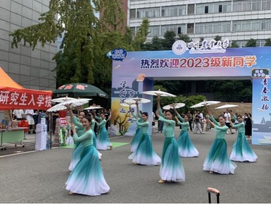 直击现场,各类迎新文艺活动点亮青春色彩。6日中午,大学生艺术团在三校区分别上演迎新快闪活动。踏着轻巧灵动的舞步,清雅流动的乐声缓缓拉开了《雨涧春行图》的卷轴,江浙地区温婉优雅的人文之美让人如痴如醉;“请党放心,强国有我”,播音主持中心掷地有声的朗诵尽显川农学子挺膺担当的爱国情怀;悠扬动听的《卡农》和《龙舌兰》在器乐团的演奏下伴随着阵阵丹桂幽香传入耳畔;一首悠扬的阿卡贝拉合唱《海洋之心》将活动推向高潮……路过的新同学和家长们驻足良久,好评不断,青春的绚丽之花在这里热情绽放。