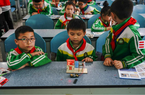 “哇,你看,房子亮起来了!”孩子们的惊叹声此起彼伏。机电学院的“风力奇趣之旅”带着孩子们从了解风力发电机的原理、结构,到亲手组装一台风力发电装置,小朋友们实践中学习了风能转化为电能的奇妙变化,体会大自然蕴含的巨大能量和可持续发展的深远意义,一颗探索与求知的种子在理论和实践中向下生根,向上生长。