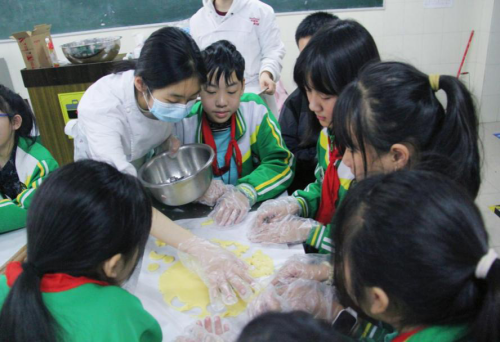 “美好‘食’光”课堂上,六二班的小朋友在食品学院老师和志愿者的指导下亲手制作出香甜的饼干,美味与笑声充斥着整个烘焙室,“你来尝尝我做的饼干!”“太有意思了,我回家也要给爸爸妈妈露一手!”孩子们争相分享着劳动带来的成就与喜悦。