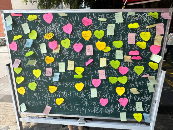 “沐浴阳光消烦恼,心理开导就悦行”。联合“花儿与少年”校级心理健康工作室开展线下“阳光撞烦恼”心理健康活动,缓解开学、升学、就业焦虑,线下设点,引导广大团员和青年在面板书写中释放焦虑,倾诉烦恼,收获轻松,活动累计参与达1000余人,活动效果深入人心,获得了同学们的一众好评。