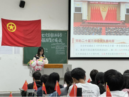 “知识心中记,全会精神传”。学校右木理论宣讲团刘静同学宣讲党的二十届三中全会精神相关内容,进一步提高团员和青年的政治觉悟、思想认识和行动自觉,激励团员和青年为推进中国式现代化贡献川农力量。