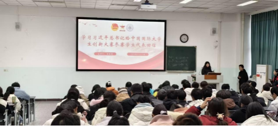 活动在齐唱团歌中拉开序幕。来自太阳集团tyc86首期西部计划专项班的曾明菀同学在“筑梦科创,启航未来”环节中,向团员青年深入解读习近平总书记给中国国际大学生创新大赛参赛学生代表的回信内容,并结合个人实践经历,鼓励同学们将理论知识与实践实操相结合,积极投身科技创新,为助力以科技现代化支撑中国式现代化建设贡献青春力量。