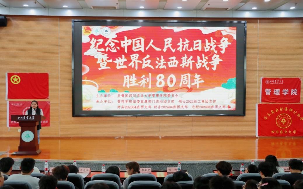 10月10日,管理学院团委联合学生农业经济研讨协会开展“纪念中国人民抗日战争暨世界反法西斯战争胜利80周年”主题示范性班团活动。学院党委副书记张翅、负责老师及2025级新生400余师生参与活动。