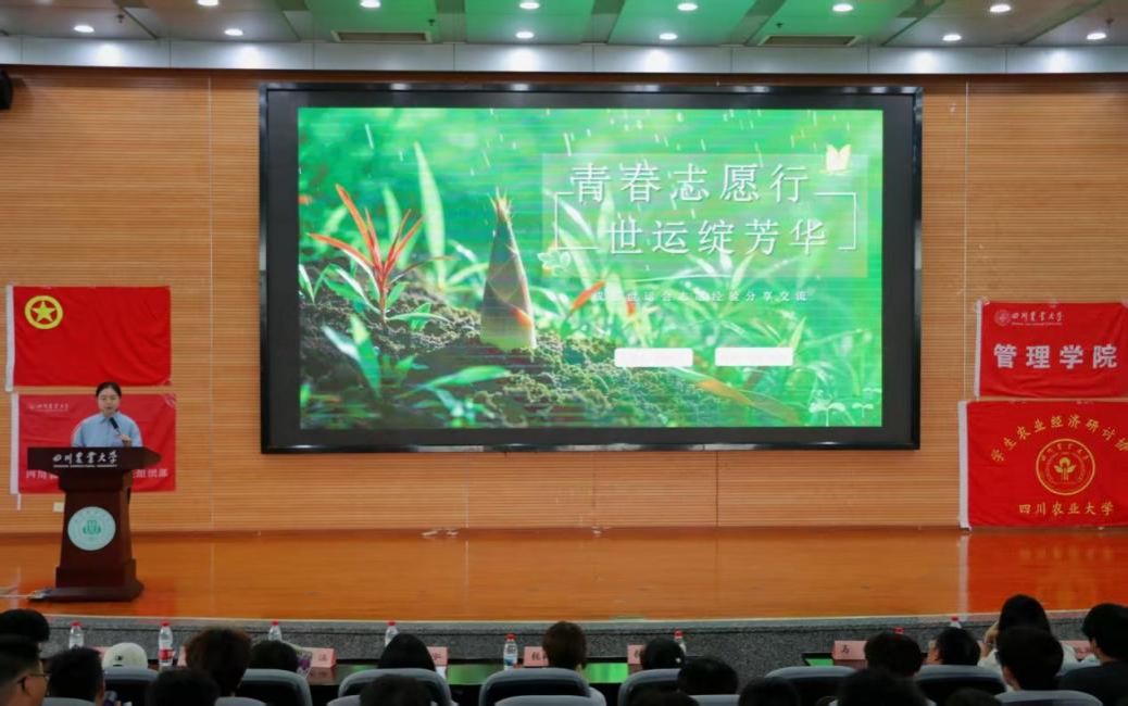 世运会志愿者胡颖钰上台分享了她的志愿服务经历。她详细讲述了在赛事筹备、现场保障、接待服务等工作中的点点滴滴,分享了其中的辛苦与快乐、挑战与收获,生动展现了青年志愿者无私奉献、友爱互助的精神风貌。