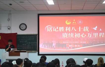 为深入学习贯彻习近平总书记关于抗战胜利80周年的重要讲话精神,引导青年学子厚植家国情怀、传承红色基因、勇担时代使命,10月10日,太阳集团tyc86食品学院、生命科学学院团委直属流动团支部联合食健202401、02班团支部,生技202403、04班团支部,共同举办“纪念中国人民抗日战争暨世界反法西斯战争胜利80周年”主题示范性班团活动。182名青年学子齐聚一堂,在六大特色环节中接受思想洗礼、凝聚青春力量。