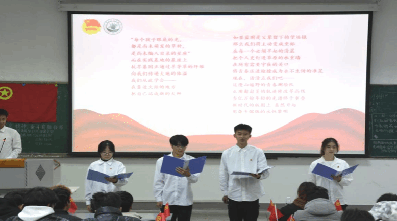 为深入学习贯彻党的二十届四中全会精神,引导广大团员青年深刻领悟全会重大战略部署,坚定理想信念、厚植家国情怀、勇担时代使命,12月2日,草业科技学院团委组织部联合五个小班团支部,在4A-103教室成功举办“深悟全会精神,奋进崭新征程”示范性班团活动。全院160余名团员青年齐聚一堂,通过理论领学、文化浸润、实践赋能、榜样引领四大板块的系列活动,展现了新时代青年与党同心、与国同行的精神风貌。