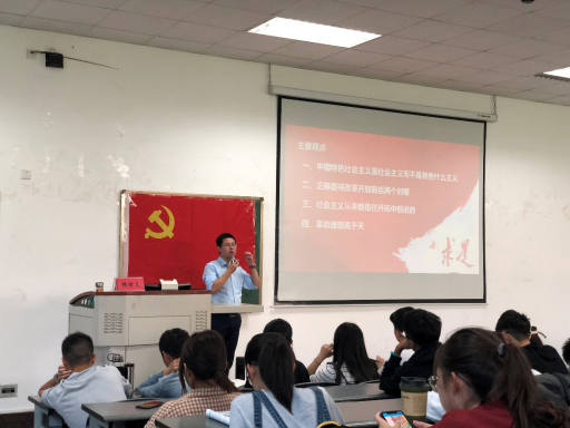 “1980年,邓小平首次提出了‘社会主义本质’的概念,直到1992年,邓小平提出,社会主义的本质,是解放生产力,发展生产力,消灭剥削,消除两极分化,最终达到共同富裕。”马克思主义学院党委书记杨世义在“关于中国特色社会主义的几个问题”主题授课中引经据典、旁征博引、偏僻入里地阐述了中国共产党为什么“能”、马克思主义为什么“行”、中国特色社会主义为什么“好”的重大命题。