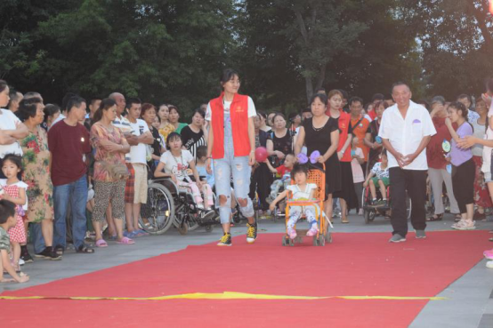 晚会中,志愿者、社工和康养家庭三方结对,共同在广场中走秀,一起负责模拟残障生活的小游戏;社区居民在一旁默默地为走秀鼓掌,也踊跃参与小游戏,体会残障家庭的日常生活。为爱发声,不少居民也提起笔为康养家庭送去祝福与鼓励,为努力不屈的小宝贝们送去温馨的话语。