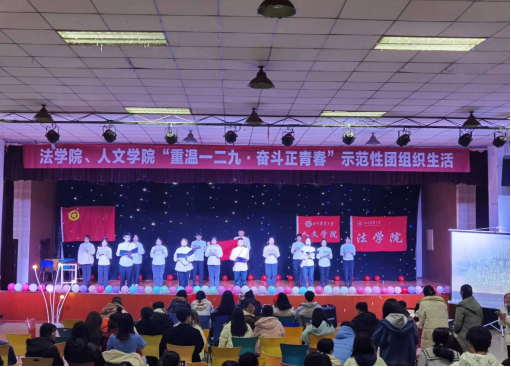 今年是中国共产党成立一百周年,也是纪念一二·九运动八十六周年,值此重要时刻,法学院、人文学院通过开展本次示范性团组织生活,以合唱、诗朗诵、情景剧等多种节目形式,带领全体团员青年重温峥嵘岁月,铭记使命担当,进一步提高了青年学子学习党史、强化信念的热情和拼搏奋进、不负人民的信心,有利于引导团员青年弘扬践行一二·九精神,为实现中华民族伟大复兴贡献青春力量。