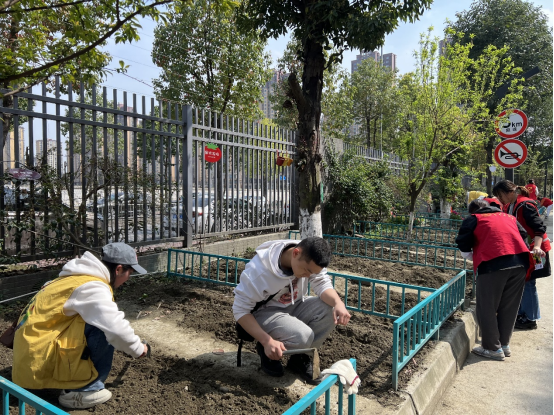 “短短几个小时的志愿活动却收获巨大,不仅和小朋友们一起学习成长,而且也有了种地初体验,从一颗种子播种到发芽出苗要经过这么多步骤。这次完成的虽只有几平米的地块,但拿锄头的手已经酸了不知道多少次了。从小便知‘谁知盘中餐,粒粒皆辛苦’,但真到自己来实践才知辛苦之所在。为了建植出一片优质草坪,我们从翻耕板结的土壤,到一遍又一遍施营养土、施基肥,再到完成土地平整之后撒种,可见为了种好一棵草是多么的难。本次活动以植树节为主题开展,也让我深知了环境保护的意义,在接下来的活动中我也会积极参与,让自己成长,也奉献出自己的青春力量。”志愿者袁苏红说到。
