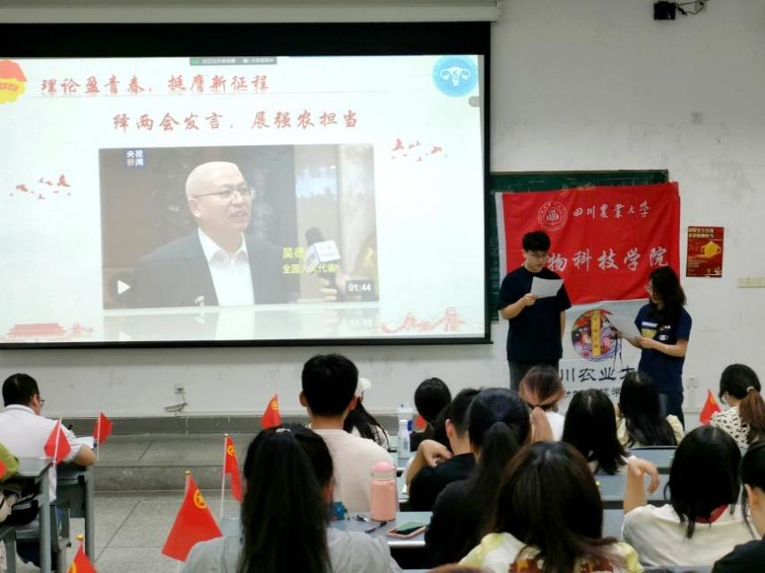“绎两会发言,展强农担当”。动科2204团支部两位同学模拟吴德校长在全国人民代表大会上发言,强调农业在国家发展中的重要地位,引领广大农学学子理论联系实际,实现在行动中受教育、长才干、作贡献的目的,鼓励青年学生投身到现代化农业建设中。