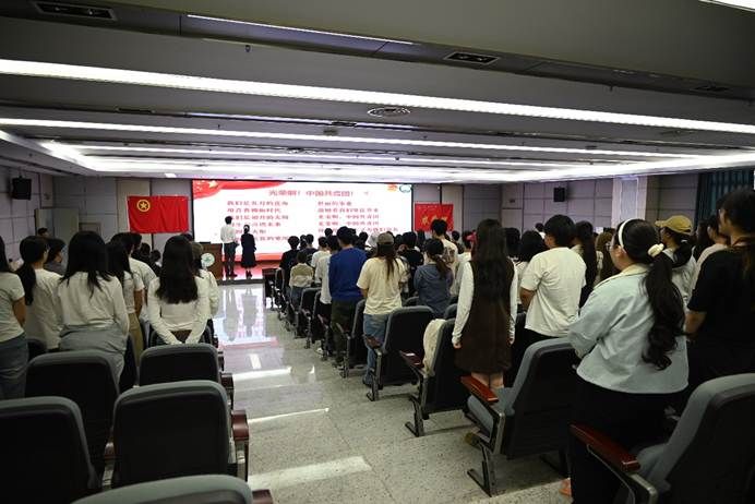 活动还组织观看了世运会志愿者采访视频,分享了“学工接班,杜绝浪费”绿色志愿经历,彰显青年学子的奉献精神。最后,全体师生再次齐唱团歌,活动在庄严奋进的氛围中圆满落幕。