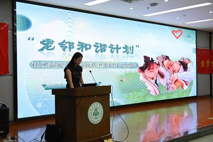 在“知行合一强农路,青春聚力乡村行”环节,张梓莹分享了参与“汇志公平·宠邻和谐计划”的志愿服务经历。该团队通过宠物义诊、科学调研与科普教育相结合的方式服务基层社区,展现了农科学子以专业所长推动文明乡村建设的责任担当。