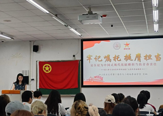为引领青年理想信念,本次班团活动邀请校青马班学员肖桐、石瑾玲、康成铭领学五四重要寄语精神。他们通过原文领学、感悟分享与同学们深入交流,“我们要向身边的榜样学习,厚植爱农情怀让青春在全面推进中华民族伟大复兴的火热实践中绽放绚丽之花。”肖桐这样分享道。广大青年要坚定不移跟党走,在推进中国式现代化的进程中展现青年作为、担当青年责任、贡献青春力量。