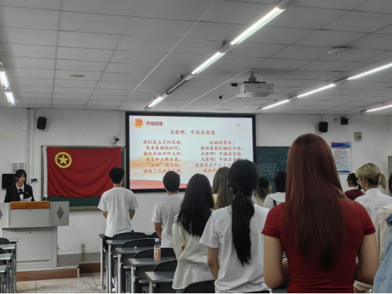 为学先进、赶先进、当先进,本次团日活动还邀请校青马班优秀学员、科创比赛获奖团队成员、优秀社会实践团队成员做主题经验分享。“四年志愿服务,1600小时志愿时长,让我的大学生活更有意义,充满价值。”校青马班学员石瑾玲这样说道。樊馨同学则分享了她在“青马燎原”红蕴童心志愿服务团的经历:“受到研究生支教团师兄师姐们的影响,我选择参与暑期支教服务,也希望能把这份感动传递给大家。”