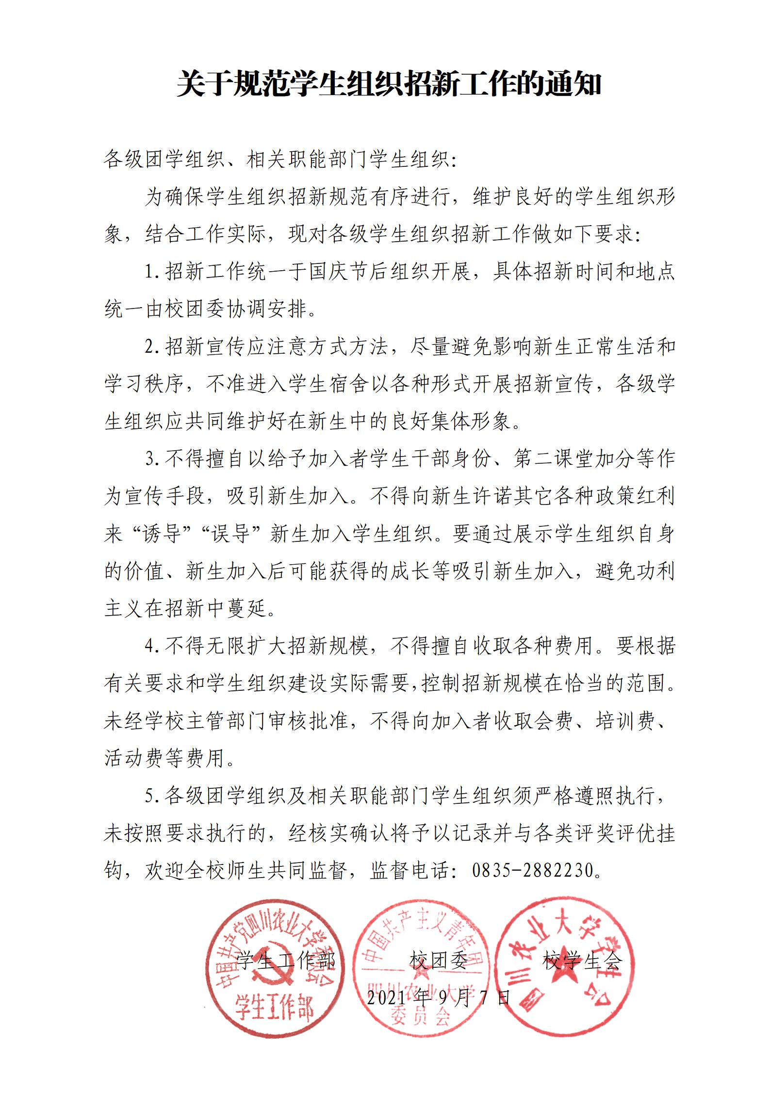 关于规范学生组织招新工作的通知