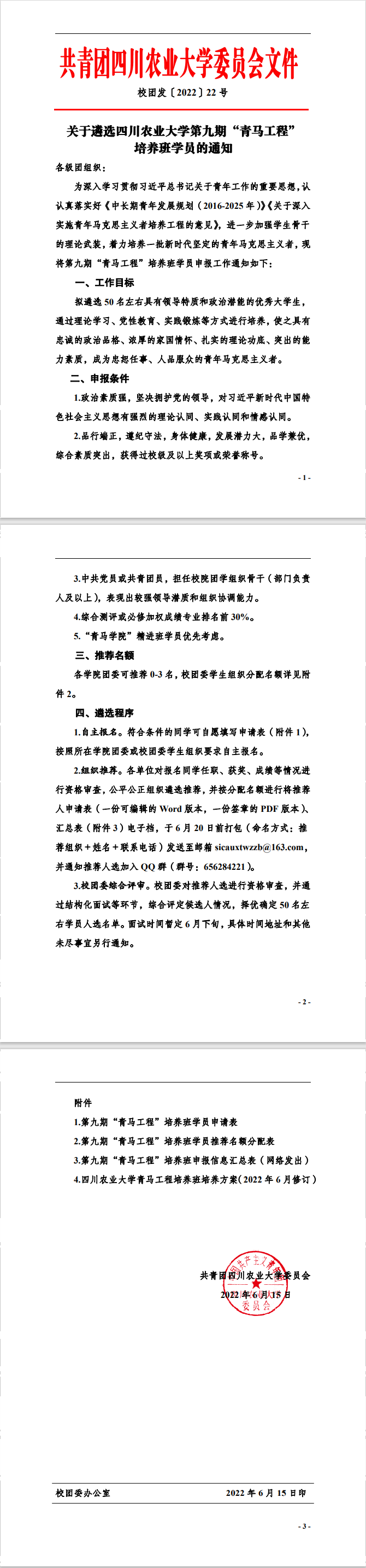 关于遴选太阳集团tyc86第九期青马工程培养班学员的通知