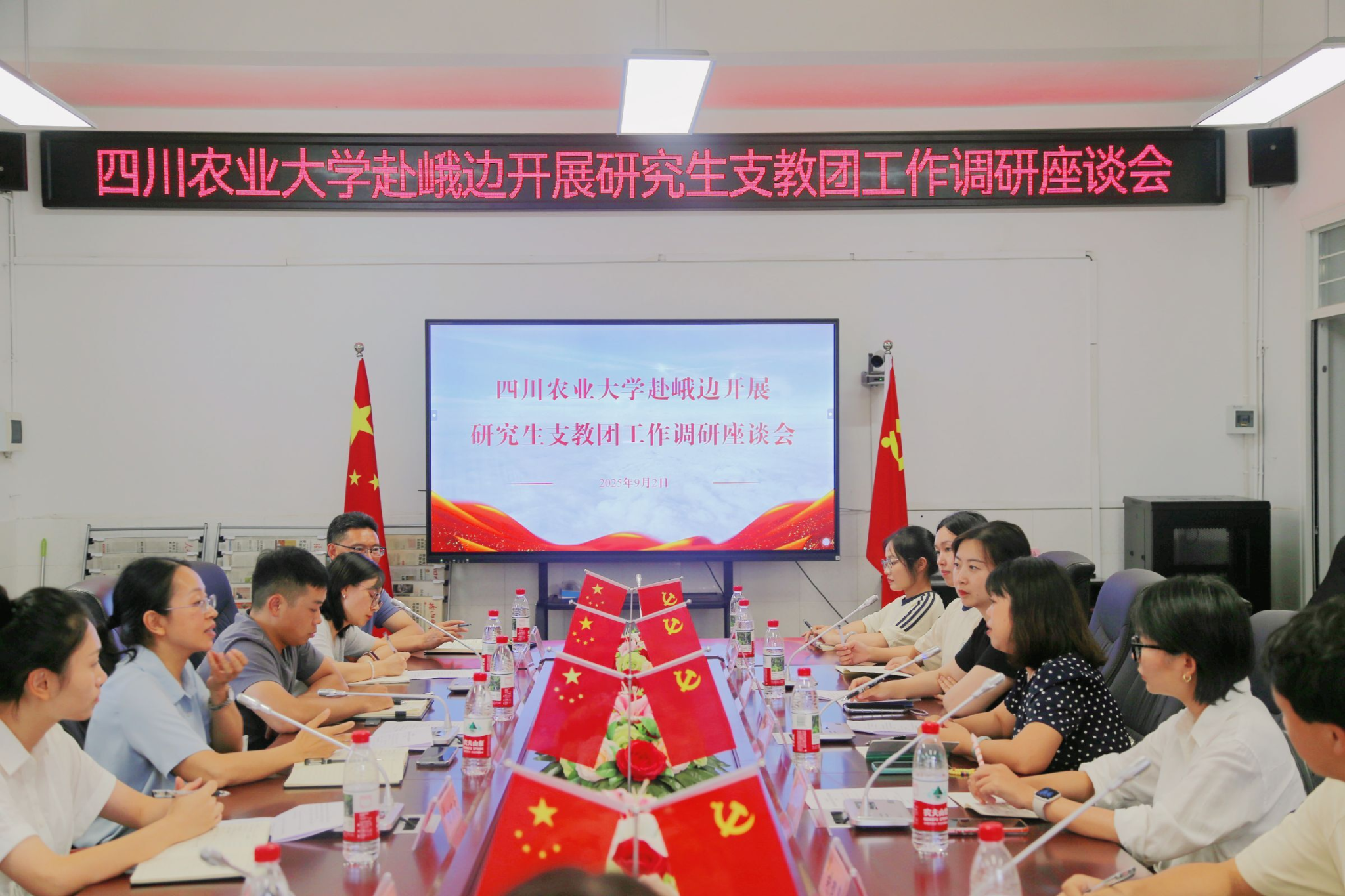 校团委书记侯维与大家充分交流后,要求研支团成员在教学一线发挥特长、争当优秀教师,并提出三点期望:一是珍惜机遇淬炼真本领,以自身教育理想为例强调教育是奉献的事业,鼓励大家把握支教时光,为西部教育注入川农力量;二是不忘初心传承精神火炬,发挥“全国样板党支部”引领作用,坚守为党育人、为国育才使命,在知识传授中厚植学生爱国爱农情怀;三是勇担使命成就双向成长,希望成员延续不怕苦、不畏难作风,在团结协作中投身教育强国与乡村振兴实践,实现“育人”与“育己”融合升华,书写无悔青春。