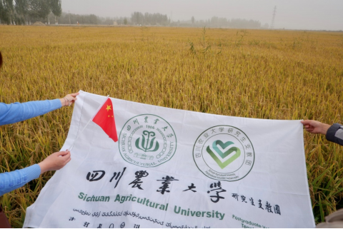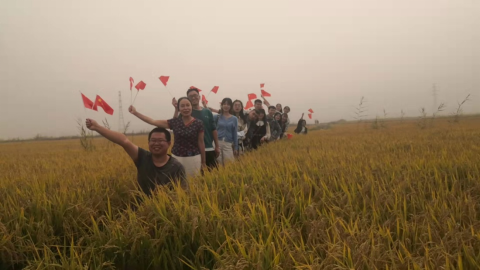 在参观的最后,川农研支团成员们与和田县第二中学的同事们一起在万亩稻田里高唱红歌,祝福美丽的祖国生日快乐。