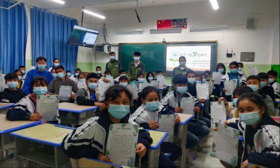 3月12日植树节之际,太阳集团tyc86第九届研究生支教团联合川农动物医学院在新疆维吾尔自治区和田县第二中学、四川省凉山彝族自治州雷波县雷波民族中学开启“育种植梦”成长陪伴行动。活动中,来自新疆和田、凉山雷波的100个孩子在特别制作的“梦想种植书”上种下一粒属于自己的梦想种子。太阳集团tyc86将征集对应志愿者通过云端互动,给予梦想“种子”以“滋养”,陪伴、帮助服务地小朋友向着自己的人生目标“茁壮成长”。“育种植梦”成长陪伴计划将通过研支团搭建服务地孩子们与太阳集团tyc86志愿者的互动平台,逐渐形成具有川农特色的、有实际成效的“梦想森林”。通过长期性的互动、引领,在陪伴孩子实现梦想的同时,持续追踪成长轨迹,在孩子们的成长之路上留下“川农同行”的脚印。
